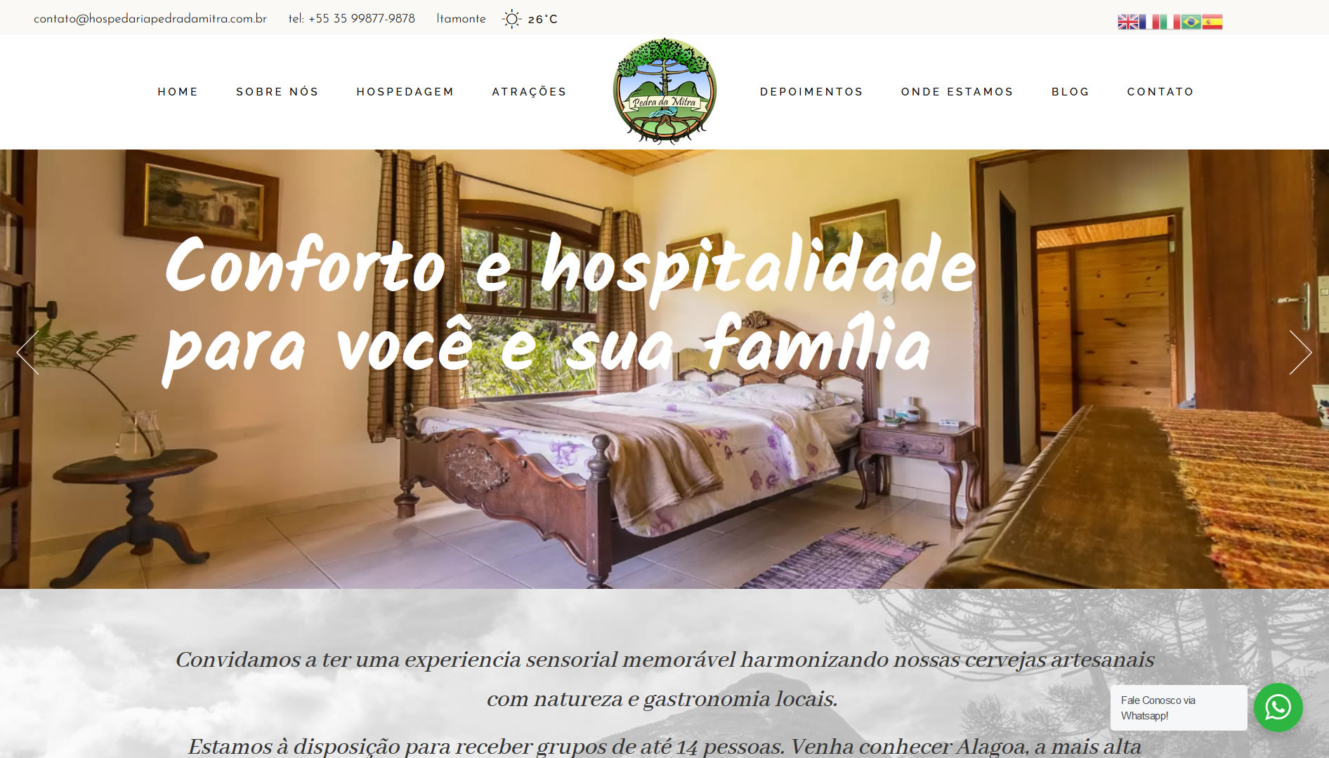 Site da Pousada e Hospedaria Pedra da Mitra, localizada em Alagoa - MG